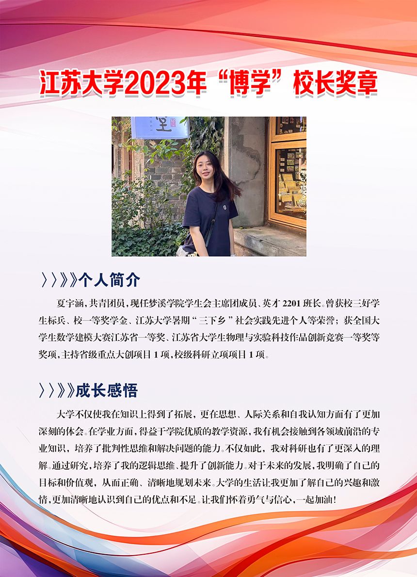 91论坛 2023年“博学”校长奖章——夏宇涵
