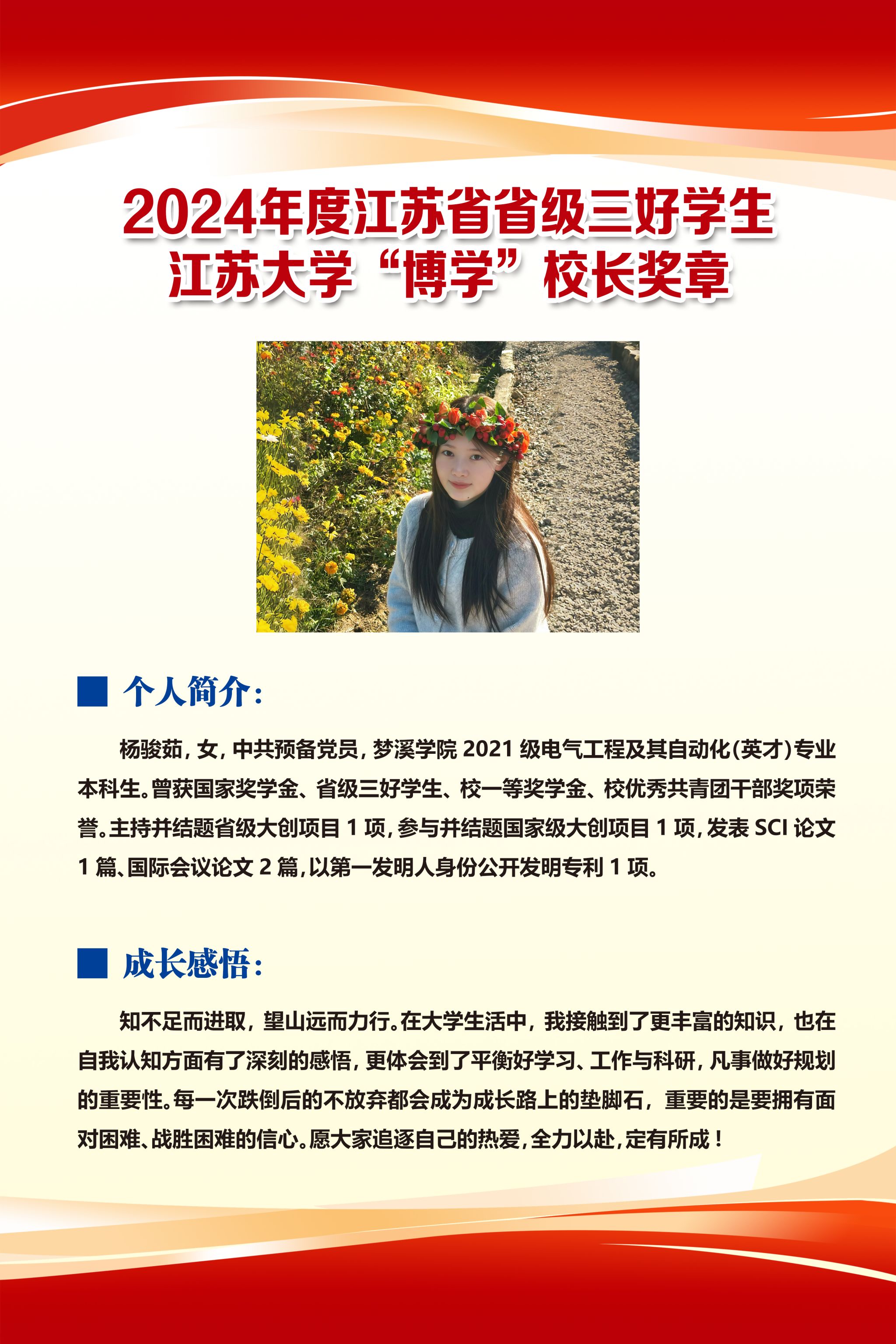 2024年度江苏省省级三好学生、91论坛 “博学”校长奖章——杨骏茹