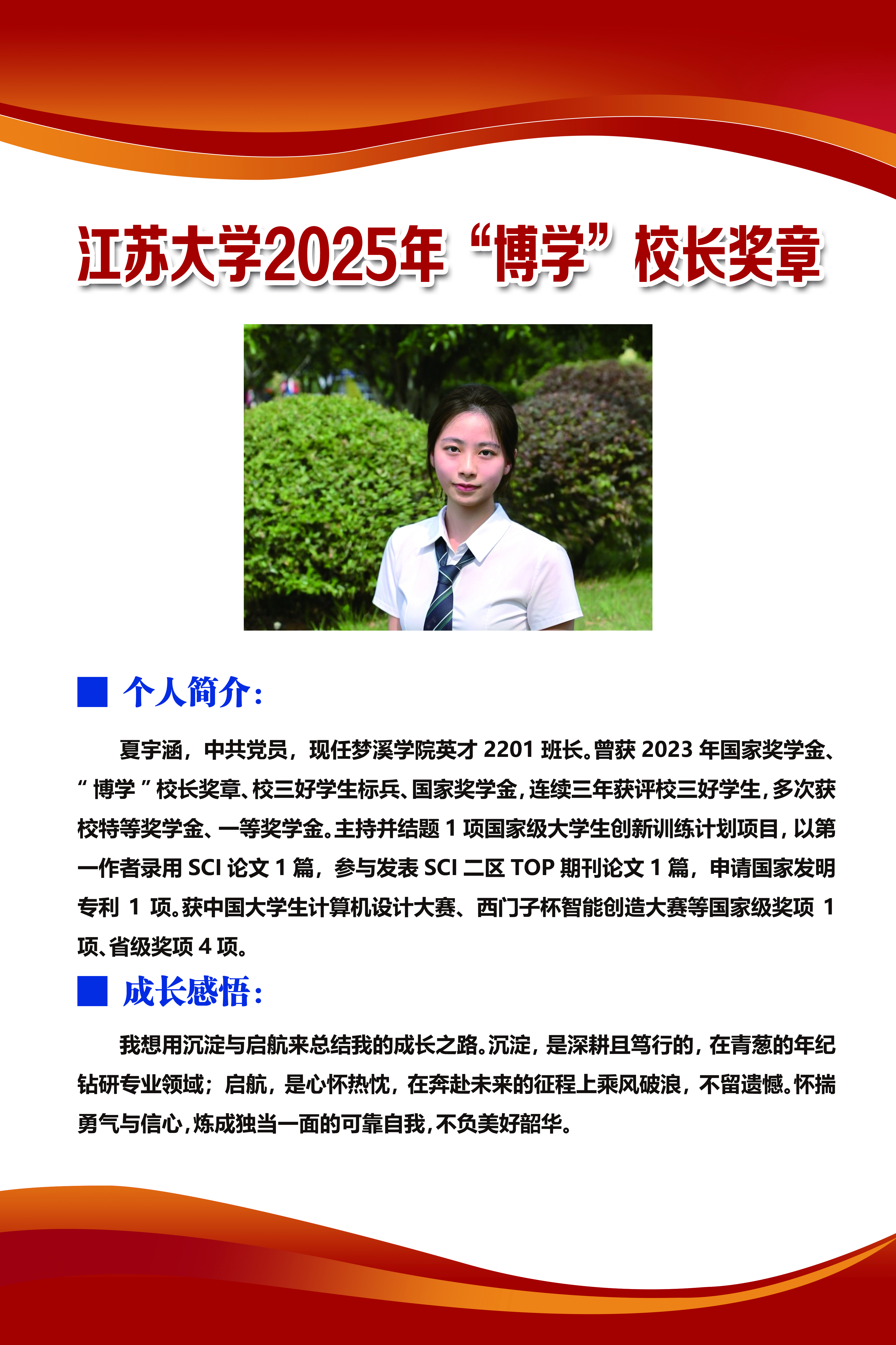 91论坛 2025年“博学”校长奖章——夏宇涵