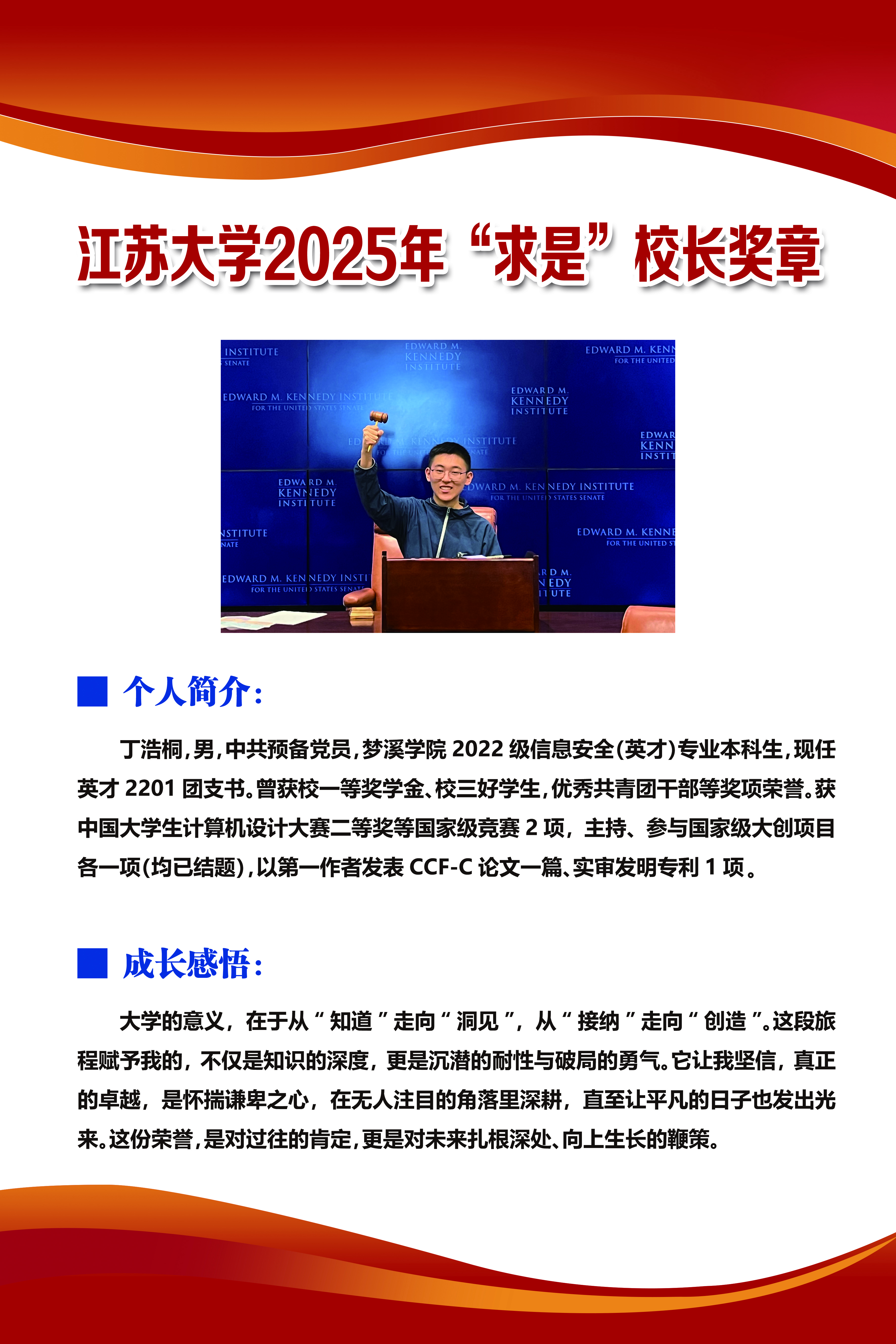 91论坛 2025年“求是”校长奖章——丁浩桐